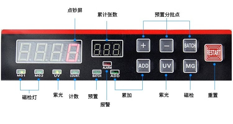 ● Automatic Detecting with UV(Ultraviolet) and MG(Magnetic) while counting.